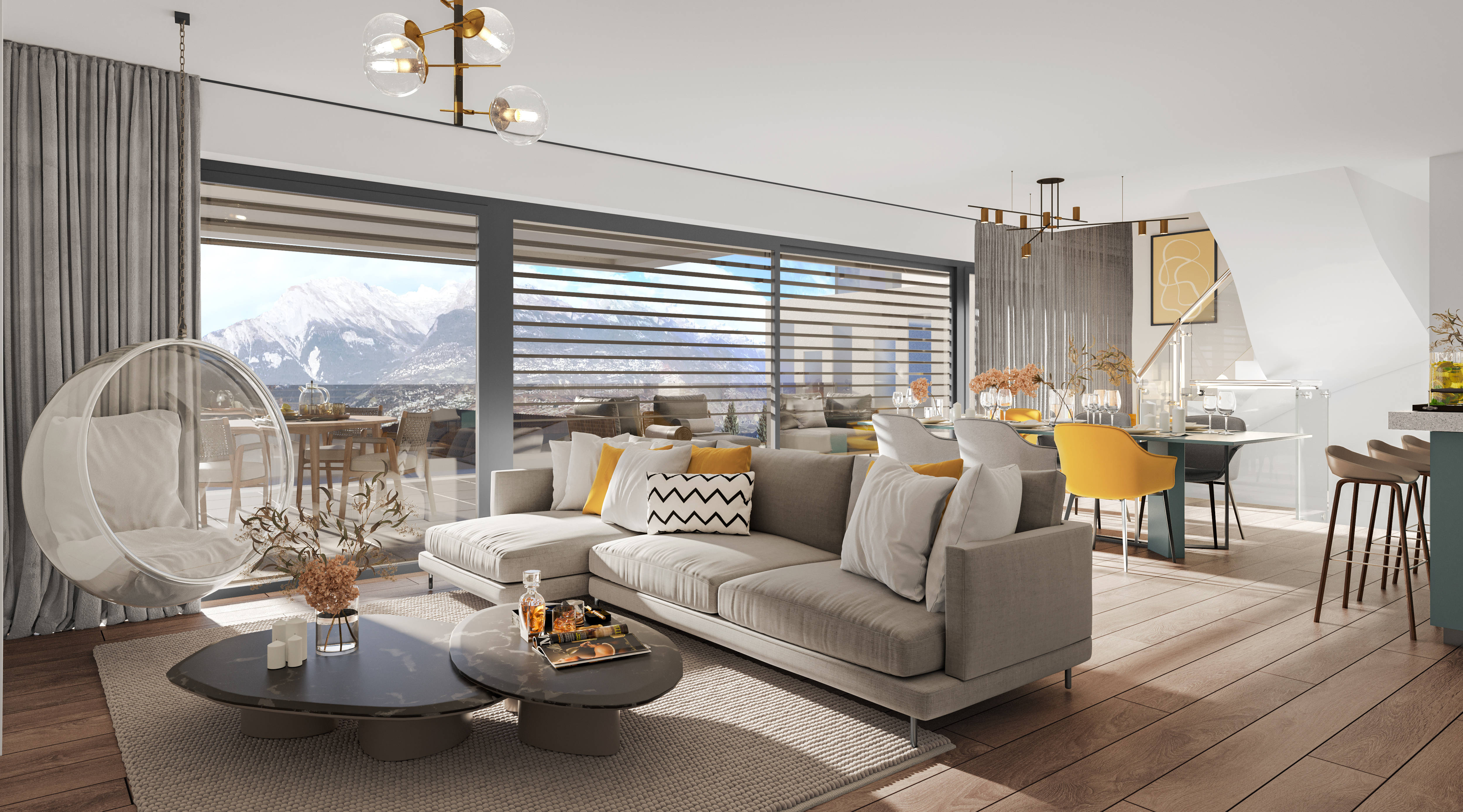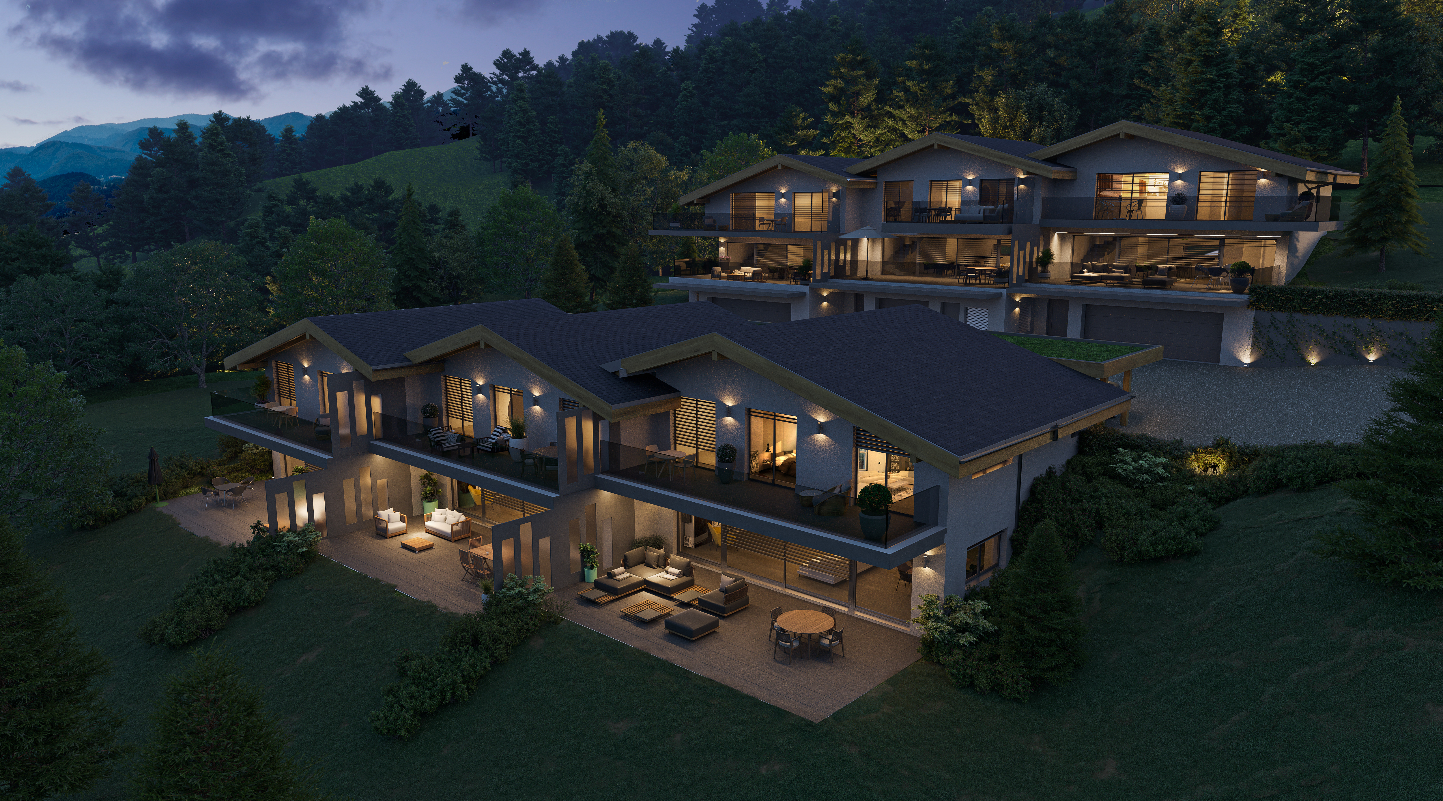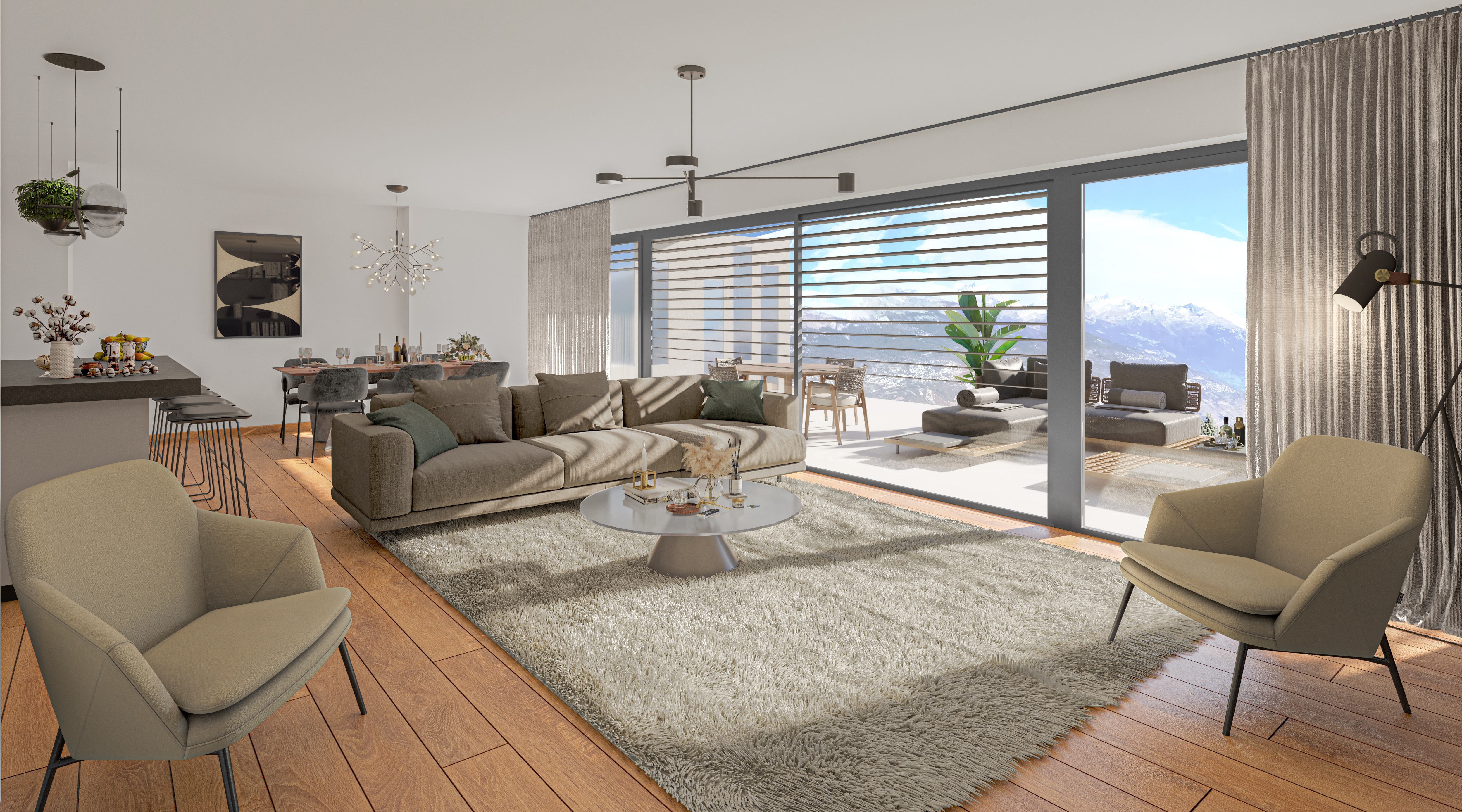 Amma Immobilier vous présente ces magnifiques villas mitoyennes de 4,5 ou 5,5 pièces surplombant la vallée du Rhône, à quelques minutes de Sion et de Vex.