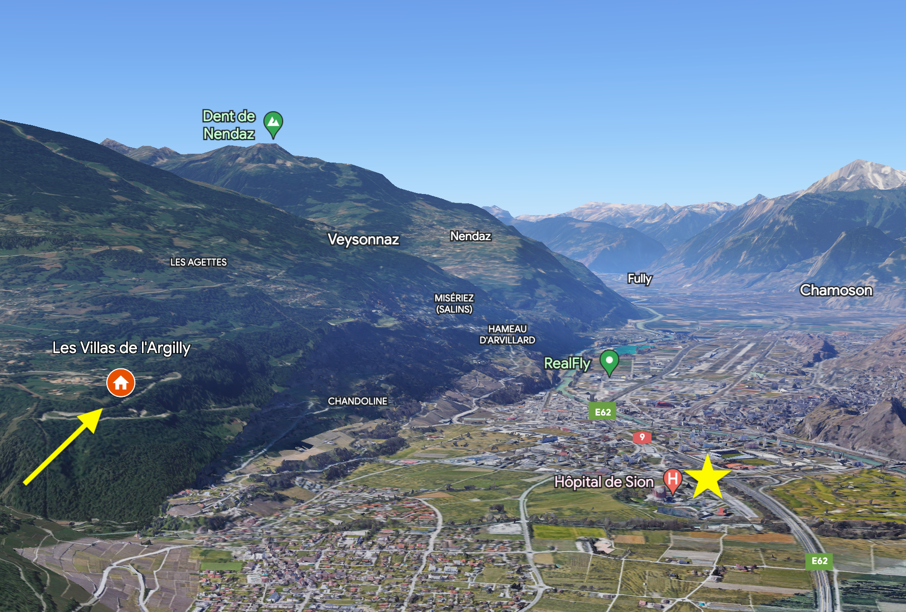 Nichées dans un quartier tranquille (l'Argilly) et en bordure de forêt, ces résidences offrent une vue imprenable sur la ville de Sion, la plaine et les Alpes suisses. Elles bénéficient d'un très bon ensolleillement toute l'année !